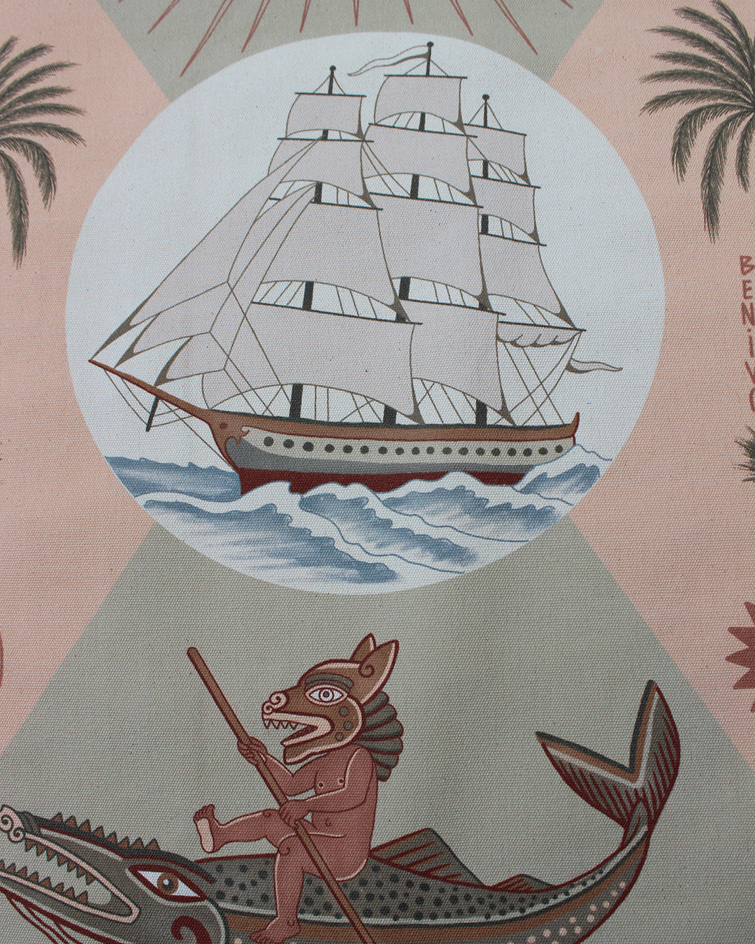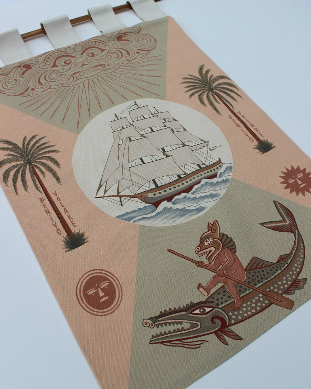 Bandeira decorativa com estampa exclusiva pintada a mão e impressa em tecido 100% algodão de alta gramatura.