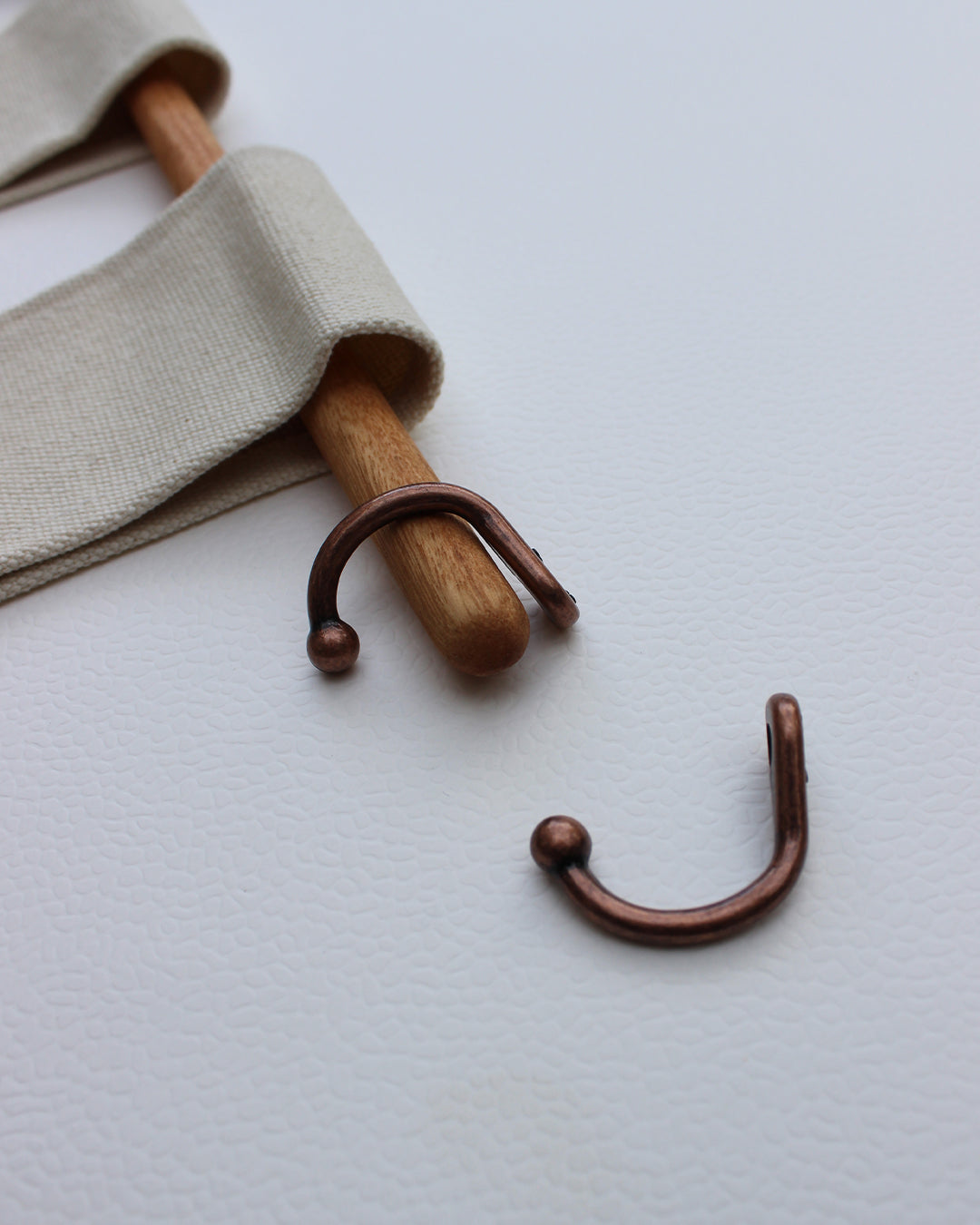 A peça acompanha uma bolsa de linho e algodão, haste de madeira e gancho para fixação na parede.